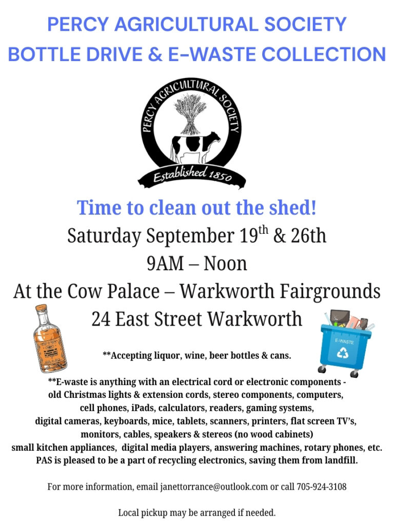 Bottle Drive E-Waste Collection Percy Agricultural Society 2026