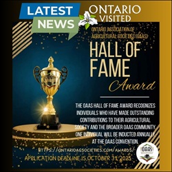 OAAS Hall of Fame Award The Ontario Association of Agricultural Societies (OAAS) Hall of Fame Award recognizes individuals who have made outstanding contributions to their agricultural society and the broader OAAS community. One individual will be inducted annually...